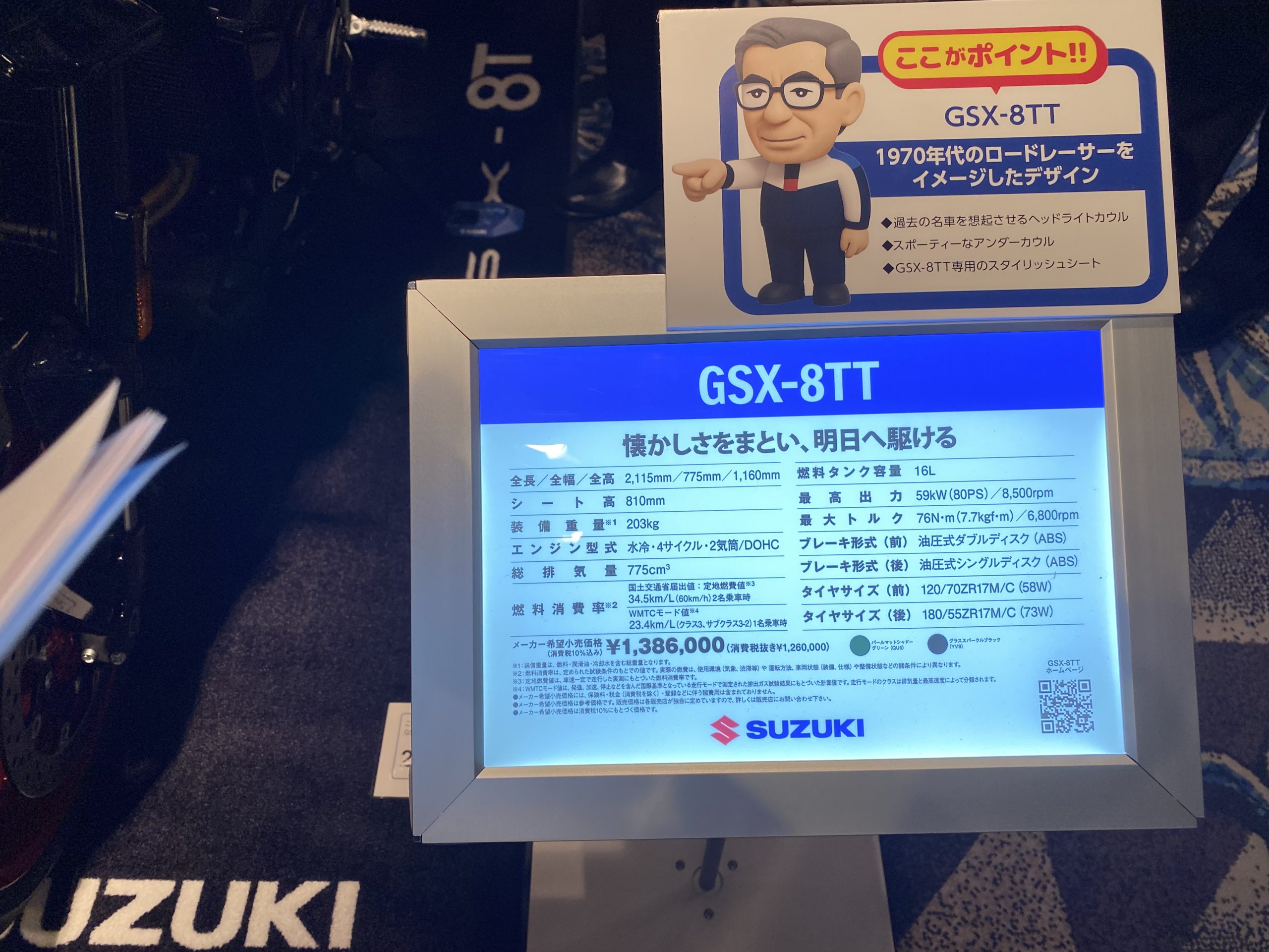 今年のスズキさんの推しはGSX8TTで展示もあり、なかなか好評